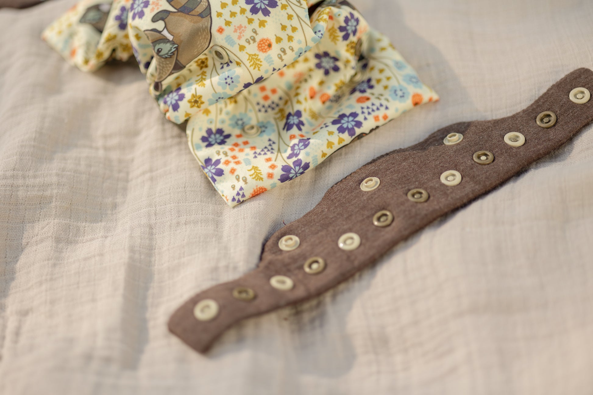 Mit dehnbarem Baumwollgürtel und elastischen Einfassgummis am PUL-Nässeschutz für weniger Abdrücke an den Beinen. Kann mit beliebiger Saugeinlage befüllt werden, zum Beispiel Mullwindeln.