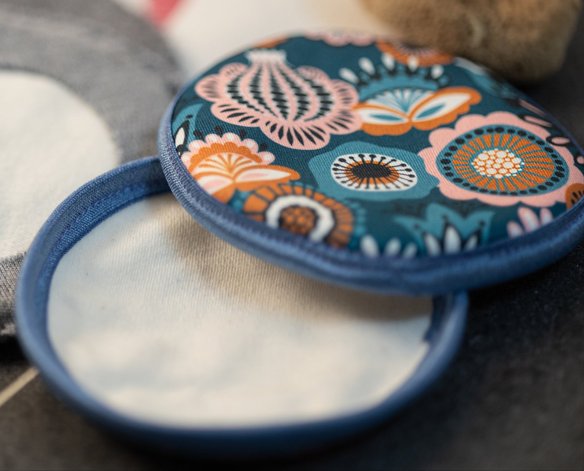 Die 3-lagigen Stilleinlagen sind mit einem weichen Gummi eingefasst für die anatomische Formgebung. Das Einseitig vernähte Label dient auch als Erinnerung, welche Seite zuletzt gestillt wurde.