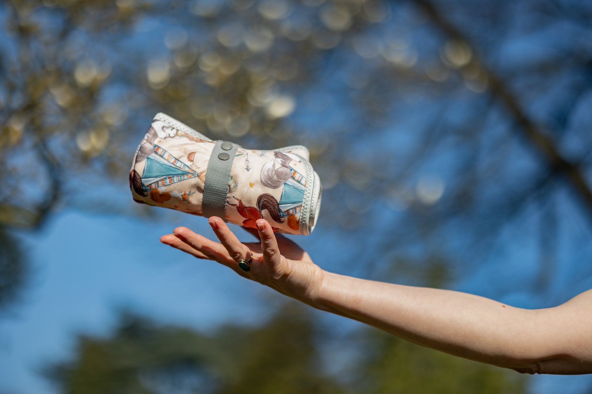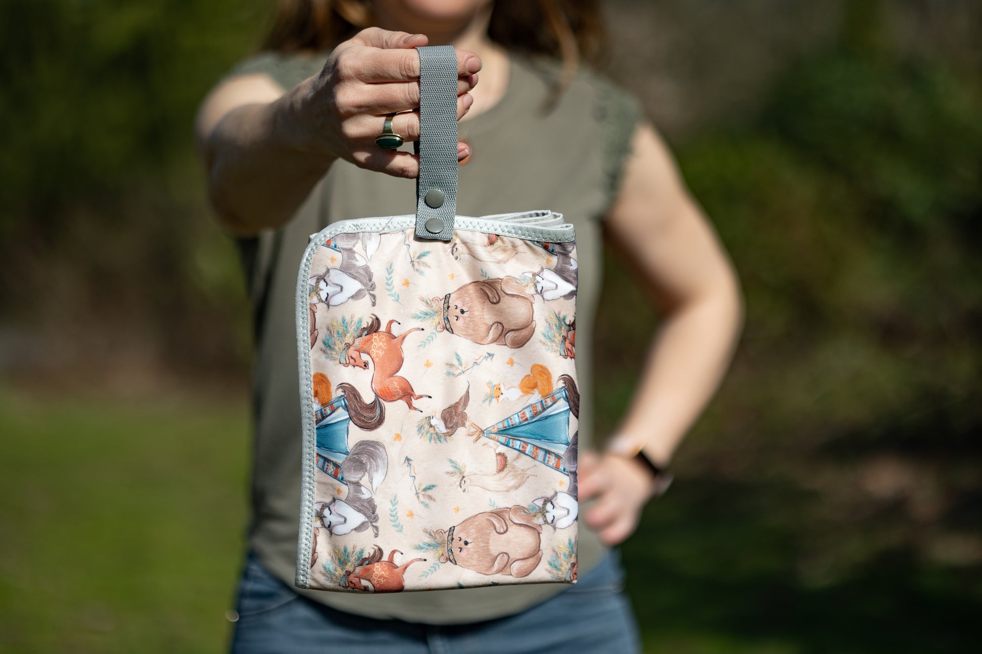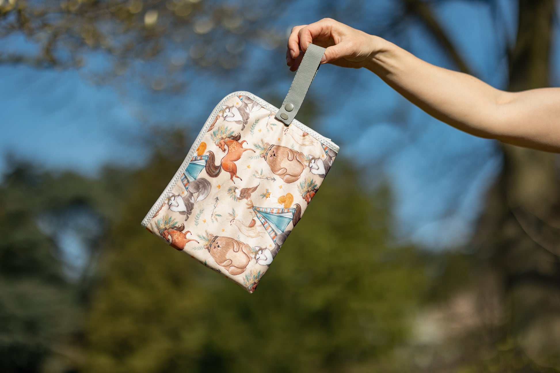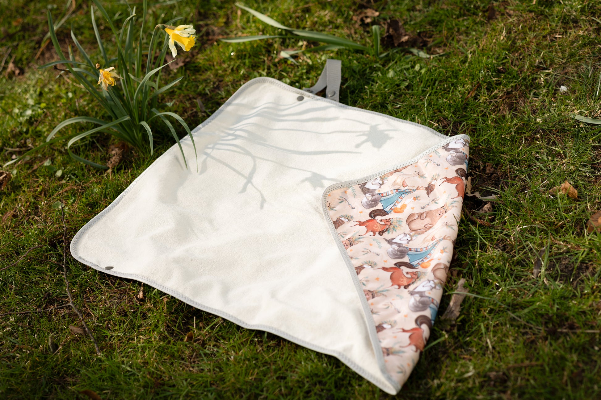 Platzsparende, wasserdichte Wickelunterlage für unterwegs zum Zusammenfalten/-rollen mit Trageschlaufe